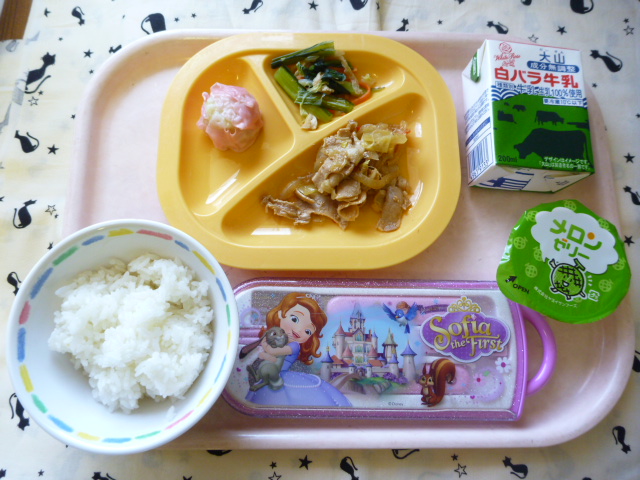 春色☆ピンク色のシューマイ☆(2021/04/19) ★ ごはん◆● 焼き肉◆● たけのこシューマイ◆● 煮浸し● メロンゼリー ※あたたかいご飯はおかわり自由です。※牛乳は年長希望者のみです。★熱や力になるもの ◆血や肉になるもの ●体の調子を整えるもの ツイート