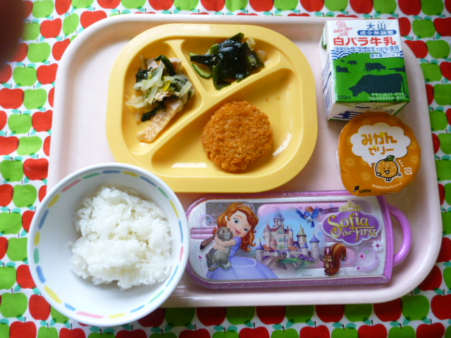 海藻はミネラルが豊富だよ☆(2021/05/17) ★ ごはん◆ エビカツ◆● ほうれん草ソテー◆● 海藻サラダ★ みかんゼリー ※あたたかいご飯はおかわり自由です。※牛乳は年長希望者のみです。★熱や力になるもの ◆血や肉になるもの ●体の調子を整えるもの ツイート