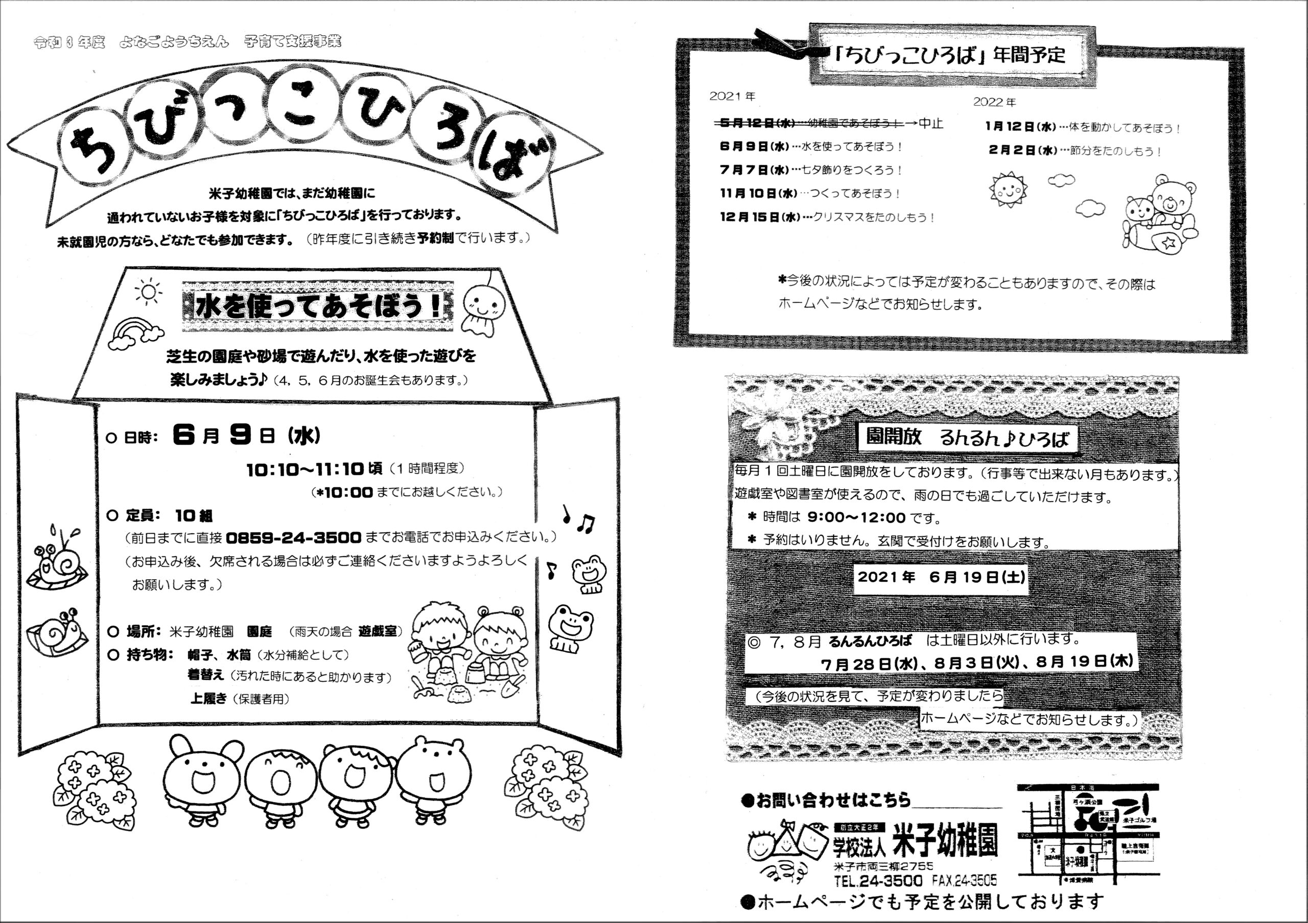 ちびっこひろば「水を使ってあそぼう!」は予定通り6月9日に行います。