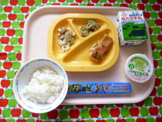 磯の香りのレンコンさん♪(2021/05/31) ★ ごはん◆● 白身魚のみぞれ煮◆● れんこんのり塩炒め● 梅和え★ ラフランスゼリー ※あたたかいご飯はおかわり自由です。※牛乳は年長希望者のみです。★熱や力になるもの ◆血や肉になるもの ●体の調子を整えるもの ツイート