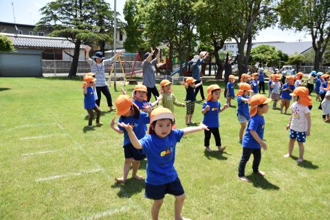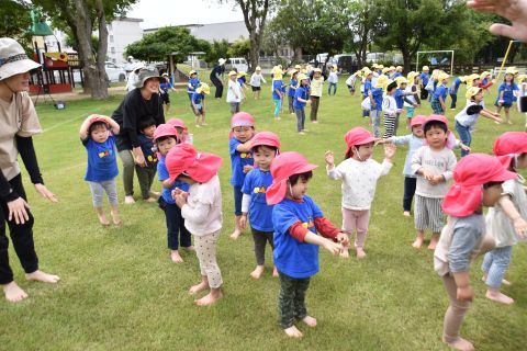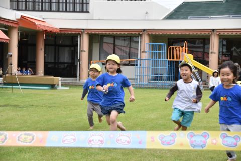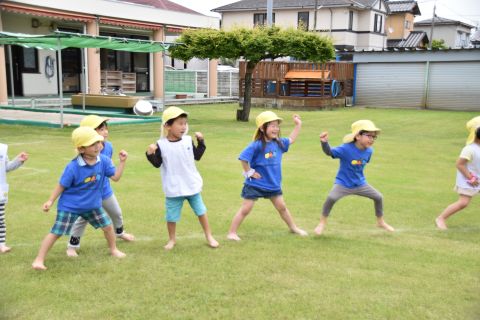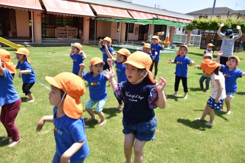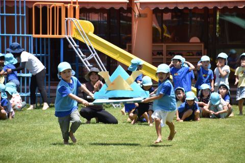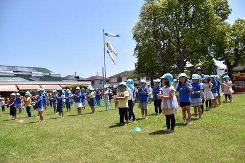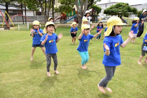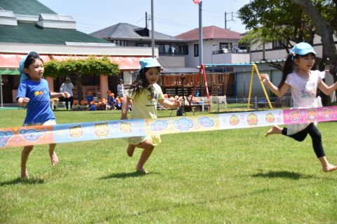 音楽に合わせて体操をしたり、かけっこやリレーの競技を行いました。