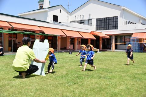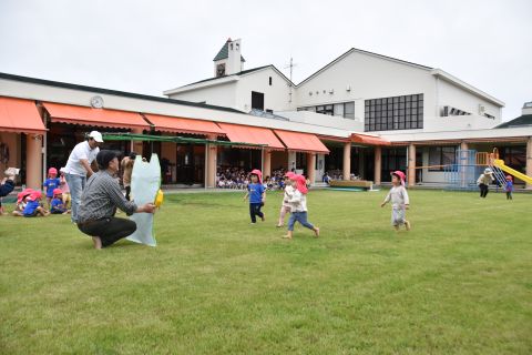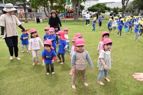 代わりに、春のミニ運動会日ごっこを、26日に年中組と2歳児組、28日に年長組と年少組で行いました。