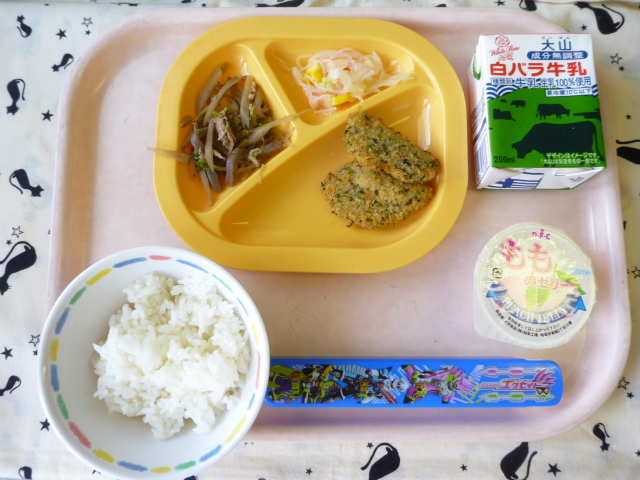 コロッとかわいい☆白身フライ(2021/06/21) ★ ごはん◆ 白身魚磯辺フライ◆● 牛しぐれ煮◆● 春雨サラダ★ ももゼリー ※あたたかいご飯はおかわり自由です。※牛乳は年長希望者のみです。★熱や力になるもの ◆血や肉になるもの ●体の調子を整えるもの ツイート