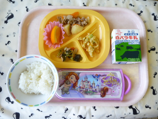 海藻でミネラルを補給しよう!(2021/06/25) ★ ごはん★◆●肉じゃが● かき揚げ◆● 海藻サラダ● オレンジ ※あたたかいご飯はおかわり自由です。※牛乳は年長希望者のみです。★熱や力になるもの ◆血や肉になるもの ●体の調子を整えるもの ツイート