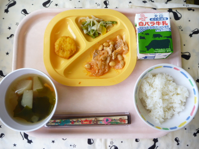 豚肉×大豆☆栄養満点だ♪(2021/06/30) ★ ごはん◆● ポークビーンズ◆ チキンナゲット● グリーンサラダ◆● わかめスープ ※あたたかいご飯とスープは、おかわり自由です。※牛乳は年長希望者のみです。★熱や力になるもの ◆血や肉になるもの ●体の調子を整えるもの ツイート