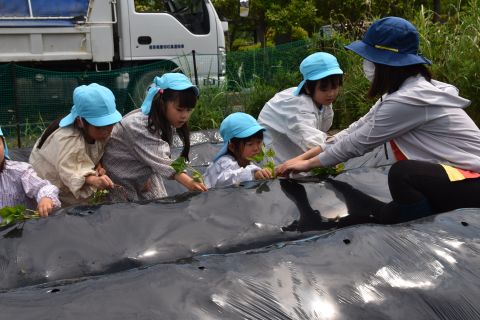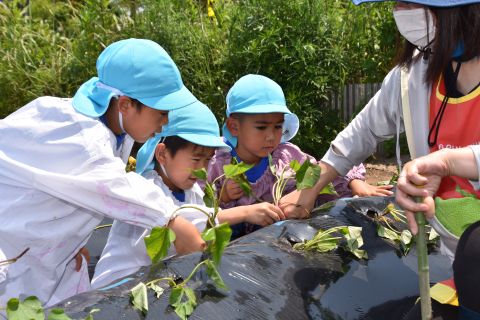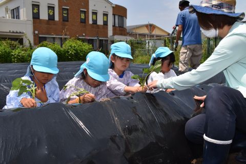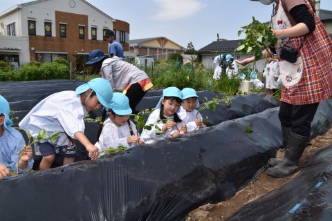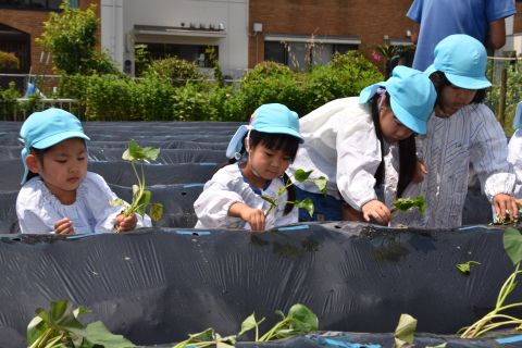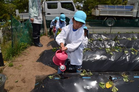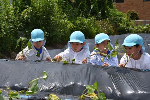 さつまいもの苗を植えました(年長)(2021/06/08) 年長組の子どもたちで幼稚園の畑にさつまいもの苗を植えました。ひとつひとつ丁寧に植えていきました。みんなでおおきくな~れ♪と願いながら順番に水やりをして作業を終えました。秋なったら大きなお芋がたくさん採れますように☆ ツイート