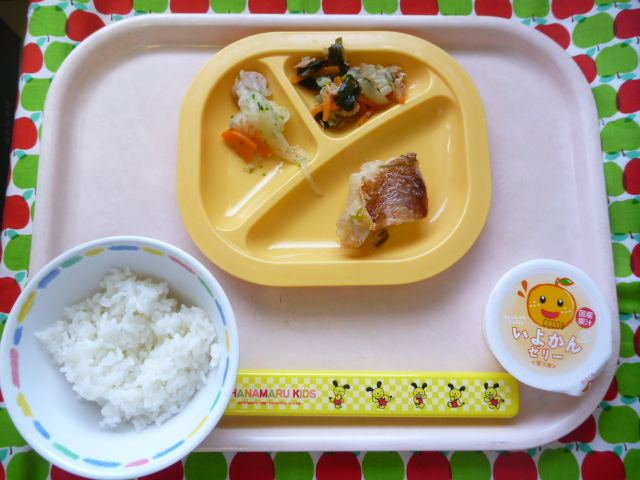 ミネラル豊富な海藻サラダ☆(2021/10/04) ★ ごはん◆● 赤魚のみぞれ煮★◆●じゃが芋のり塩炒め◆ 海藻サラダ★ いよかんゼリー ※あたたかいご飯はおかわり自由です。※牛乳は年長希望者のみです。★熱や力になるもの ◆血や肉になるもの ●体の調子を整えるもの ツイート
