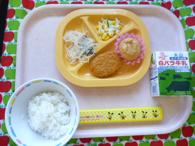 野菜をたべて風邪を予防しよう!(2021/10/05) ★ ごはん★ ポテトコロッケ★◆●春雨ソテー★● コールスローサラダ★ シュークリーム ※あたたかいご飯はおかわり自由です。※牛乳は年長希望者のみです。★熱や力になるもの ◆血や肉になるもの ●体の調子を整えるもの ツイート