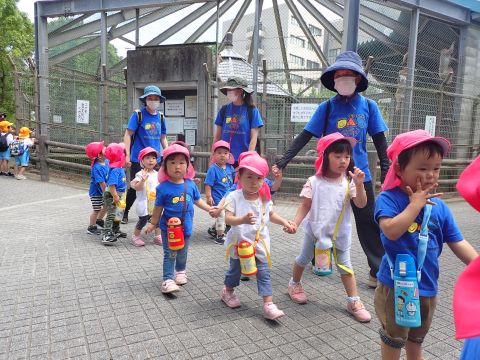 湊山公園遠足(2歳児組)(2021/06/22) 湊山公園に遠足に行ってきました。こあら組・ひよこ組で行く初めてのバス遠足だったので、朝からワクワクでした。大きな噴水やD51機関車に大興奮!猿ヶ島では、たくさんのおサルさんに夢中になって見ていました。友だちと手をつないでいっぱい歩いて、とっても楽しい遠足でした。次回も楽しみだね~!! ツイート