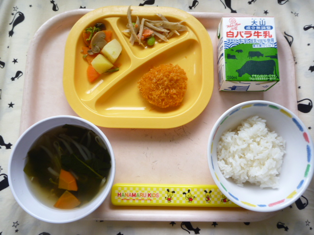 プリプリ☆エビ入りカツだよ!(2021/10/13) ★ ごはん◆ エビカツ★● ポトフ◆● ごぼうサラダ★◆●中華風スープ ※あたたかいご飯とスープは、おかわり自由です。※牛乳は年長希望者のみです。★熱や力になるもの ◆血や肉になるもの ●体の調子を整えるもの ツイート