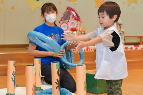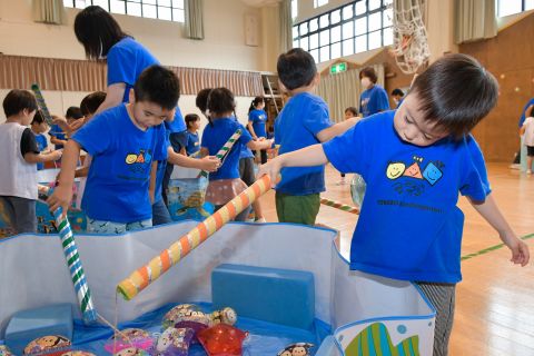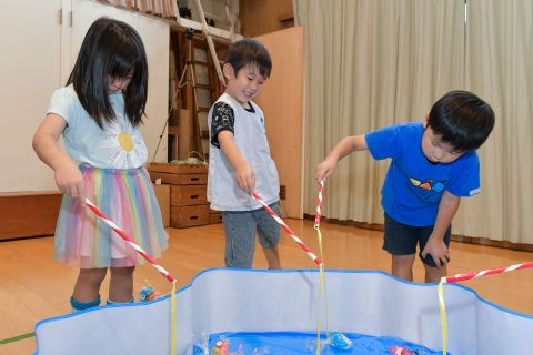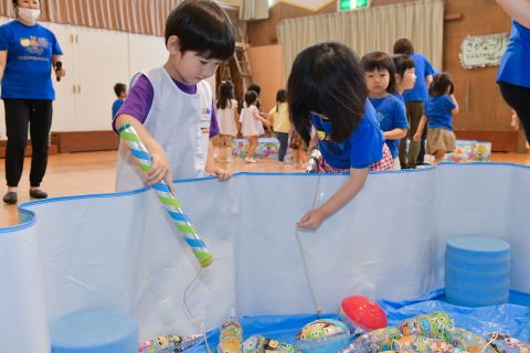 夏祭りごっこ(2021/07/08) 学年ごとに遊戯室で夏祭りごっこを行いました。さかなつり・ボーリング・わなげ・ボールすくいをして楽しみました!子どもたちは、とっても楽しく遊んでいましたよ♪今日は、ボールすくいで釣ったエアーヨーヨーをお土産に持って帰りました☆ ツイート