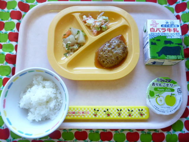 ほんのり甘い☆さつまいもサラダ☆(2021/10/18) ★ ごはん◆ 和風ハンバーグ◆● 大根旨煮★● さつま芋サラダ★ 青りんごゼリー ※あたたかいご飯はおかわり自由です。※牛乳は年長希望者のみです。★熱や力になるもの ◆血や肉になるもの ●体の調子を整えるもの ツイート