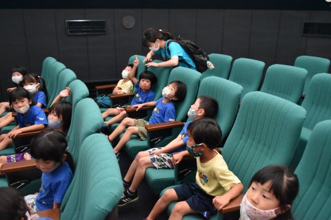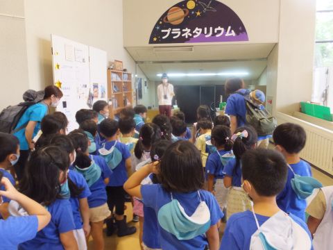 プラネタリウム見学(年長)(2021/07/09・07/19) コロナ対策のため、7/9と7/19の2日間に分かれて児童文化センターへ行き、プラネタリウムを鑑賞しました。七夕のお話や星座の名前を教えてもらい、興味津々で見入っていた子どもたちでした。園に帰ってからも、友だちと話をし、盛り上がる姿があり、楽しいお出かけとなりました☆ ツイート