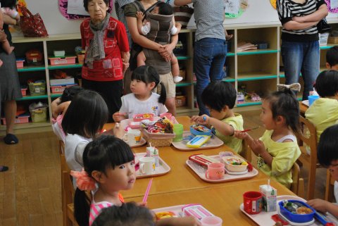 食事の支度の様子やお友だちと楽しく食事する様子等を見てもらいました。