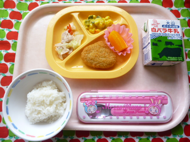 初めまして!くりのコロッケだよ♪(2021/10/29) ★ ごはん★ くりコロッケ◆● 肉野菜炒め★● かぼちゃサラダ● オレンジ ※あたたかいご飯はおかわり自由です。※牛乳は年長希望者のみです。★熱や力になるもの ◆血や肉になるもの ●体の調子を整えるもの ツイート