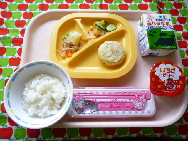 トロトロ肉みその豆腐ハンバーグ☆(2021/11/08) ★ ごはん◆● 肉みそ入り豆腐バーグ★◆●ツナじゃが★● 大根サラダ★ いちごゼリー ※あたたかいご飯はおかわり自由です。※牛乳は年長希望者のみです。★熱や力になるもの ◆血や肉になるもの ●体の調子を整えるもの ツイート