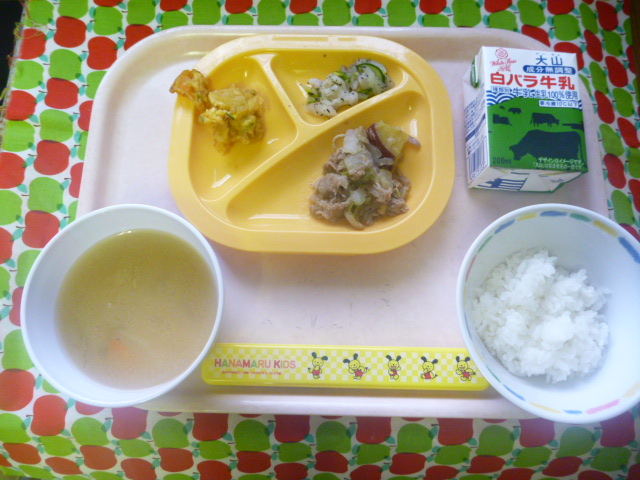 さつま芋を使った秋の肉じゃが☆(2021/11/10) ★ ごはん★◆●さつま芋の肉じゃが● かき揚げ● ゆかり和え● 大根みそ汁 ※あたたかいご飯とスープは、おかわり自由です。※牛乳は年長希望者のみです。★熱や力になるもの ◆血や肉になるもの ●体の調子を整えるもの ツイート