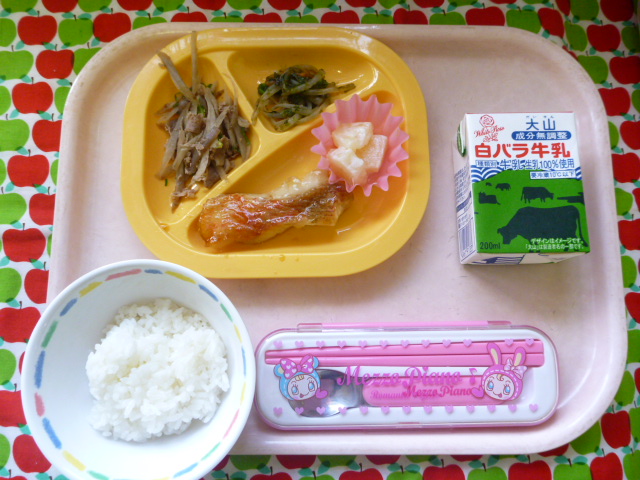 味がしみしみ♪赤魚の煮付け☆(2021/11/16) ★ ごはん◆ 赤魚の煮付け◆● 牛しぐれ煮◆● お浸し◆● フルーツヨーグルト ※あたたかいご飯はおかわり自由です。※牛乳は年長希望者のみです。★熱や力になるもの ◆血や肉になるもの ●体の調子を整えるもの ツイート