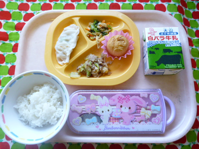 甘辛でおいしい☆すき焼き風(2021/11/19) ★ ごはん◆● すき焼き風煮★◆●ギョーザ● ゆず和え★ シュークリーム ※あたたかいご飯はおかわり自由です。※牛乳は年長希望者のみです。★熱や力になるもの ◆血や肉になるもの ●体の調子を整えるもの ツイート