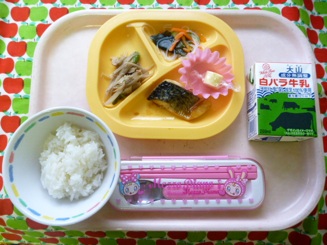 お酢のパワーで元気いっぱい!(2021/11/22) ★ ごはん◆ サバの蒲焼き風★◆●筑前煮★◆●酢の物◆ チーズ ※あたたかいご飯はおかわり自由です。※牛乳は年長希望者のみです。★熱や力になるもの ◆血や肉になるもの ●体の調子を整えるもの ツイート