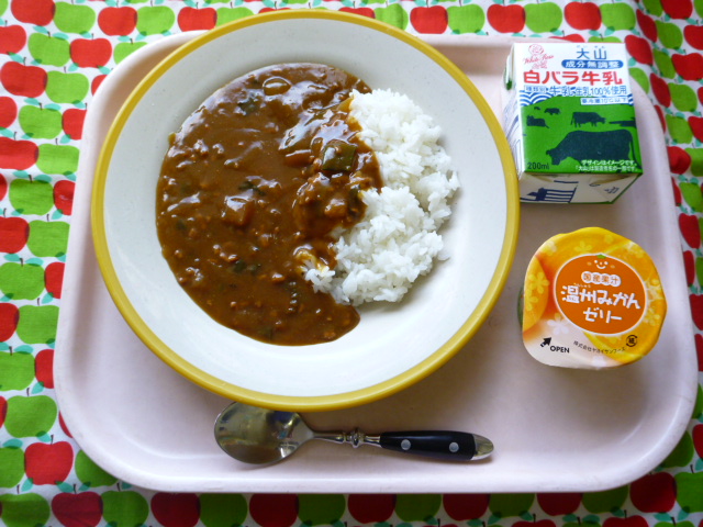 体ポカポカ☆あったかカレー☆(2021/11/24) ★ ごはん◆● 野菜カレー★ みかんゼリー ※あたたかいご飯・カレーはおかわり自由です。※牛乳は年長希望者のみです。★熱や力になるもの ◆血や肉になるもの ●体の調子を整えるもの ツイート