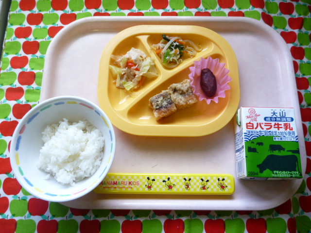 しらすを食べてカルシウム補給☆(2021/12/03) ★ ごはん◆ 鮭の竜田揚げ◆● 肉野菜炒め◆● しらす和え★ 焼き芋 ※あたたかいご飯はおかわり自由です。※牛乳は年長希望者のみです。★熱や力になるもの ◆血や肉になるもの ●体の調子を整えるもの ツイート