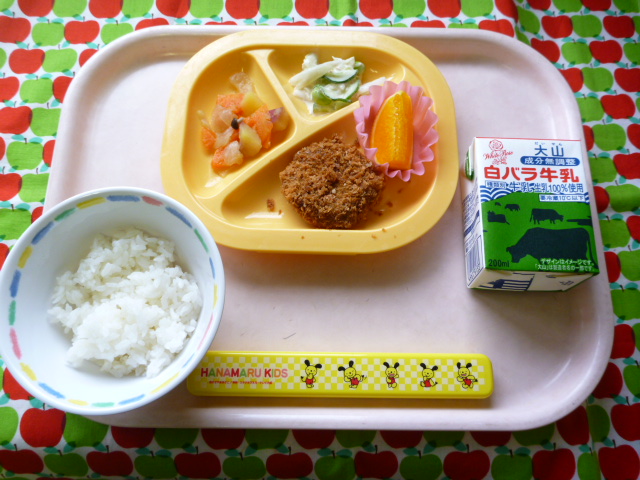 緑の野菜を食べて風邪予防!(2021/12/08) ★ ごはん◆ メンチカツ★● コンソメ煮◆● グリーンサラダ● オレンジ ※あたたかいご飯はおかわり自由です。※牛乳は年長希望者のみです。★熱や力になるもの ◆血や肉になるもの ●体の調子を整えるもの ツイート
