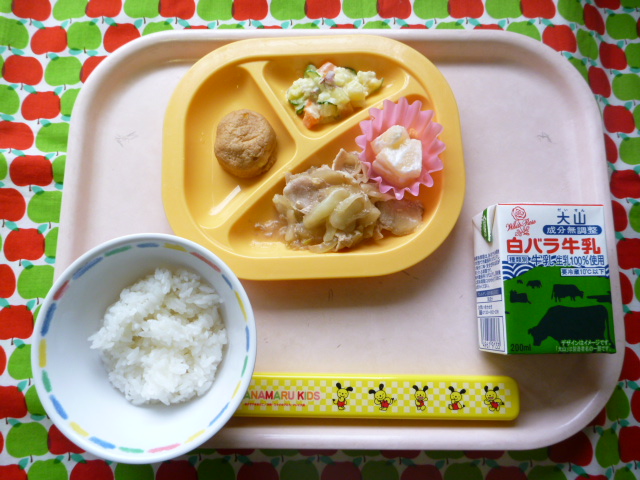 ほんのり甘い☆さつま芋サラダ(2021/12/17) ★ ごはん◆● 豚肉の生姜炒め◆● がんも煮★● さつま芋サラダ◆● フルーツヨーグルト ※あたたかいご飯はおかわり自由です。※牛乳は年長希望者のみです。★熱や力になるもの ◆血や肉になるもの ●体の調子を整えるもの ツイート