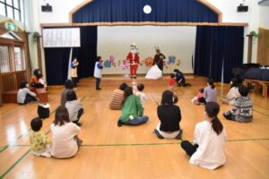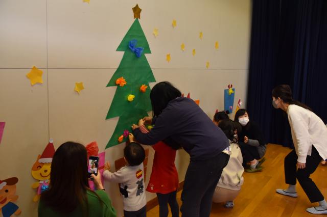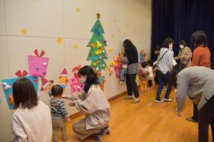 この日はちびっこひろばに遊びにきてくださった親子のみなさんと、一足早くクリスマス会をしました。