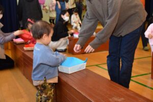 パネルシアター『森のクリスマス』では、次々と出てくる動物たちに「どんなプレゼントが来るかな~」とワクワクしながら見ました。