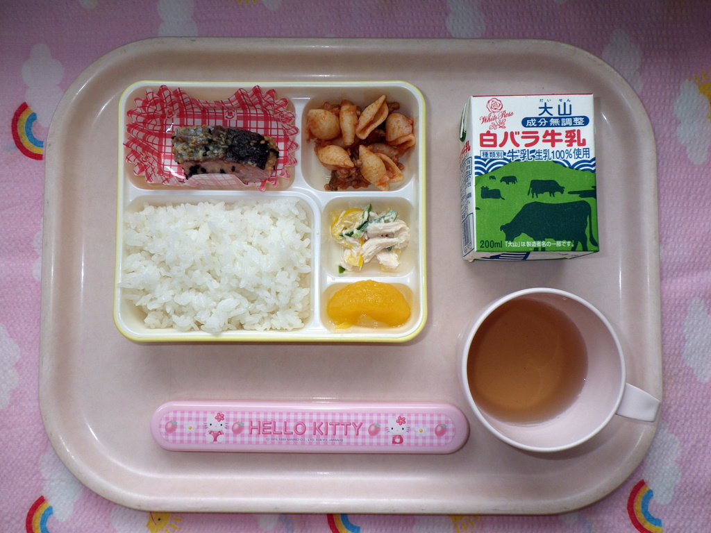 お魚がチーズの衣をまとって登場☆(2013/06/28) ★ ごはん ◆ 白身魚のごまチーズ焼き ★◆●ひき肉とマカロニのケチャップ炒め ◆●三色ピーマンサラダ ★ 甘夏 ※あたたかいご飯はおかわり自由です。 ※牛乳は希望者のみです。 ★熱や力になるもの ◆血や肉になるもの ●体の調子を整えるもの ツイート