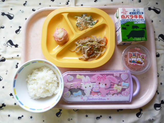 今日のゼリーは特別だよ♪おたのしみに(2022/03/04) ★ ごはん ◆● 牛もやし炒め ◆● たけのこシューマイ ◆● 白和え ★ ひな祭りゼリー ※あたたかいご飯はおかわり自由です。 ※牛乳は年長希望者のみです。 ★熱や力になるもの ◆血や肉になるもの ●体の調子を整えるもの ツイート