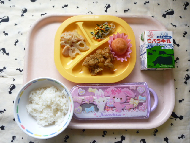 シャキッとれんこん☆よくかんで(2022/03/15) ★ ごはん ◆ 鶏のカレー揚げ ◆● れんこんきんぴら ◆● 千草和え ★ プチケーキ ※あたたかいご飯はおかわり自由です。 ※牛乳は年長希望者のみです。 ★熱や力になるもの ◆血や肉になるもの ●体の調子を整えるもの ツイート
