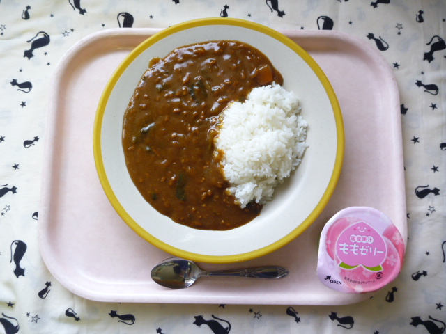 みんな大好き☆カレーライス♪(2022/03/16) ★ ごはん ◆● 野菜カレー ★ ピーチゼリー ※あたたかいご飯・カレーはおかわり自由です。 ★熱や力になるもの◆血や肉になるもの ●体の調子を整えるもの ツイート