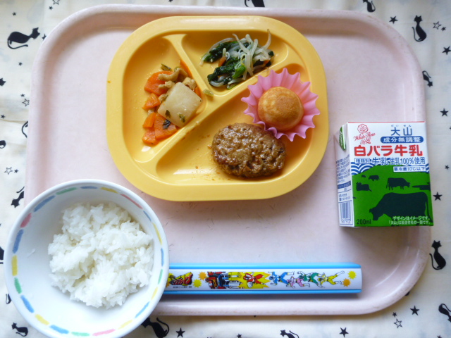 テリっと輝く☆照焼きハンバーグ☆(2022/04/19) ★ ごはん ◆ 照焼きハンバーグ ◆● 大根旨煮 ◆● しらす和え ★ プチケーキ ※あたたかいご飯はおかわり自由です。 ※牛乳は年長希望者のみです。 ★熱や力になるもの ◆血や肉になるもの ●体の調子を整えるもの ツイート