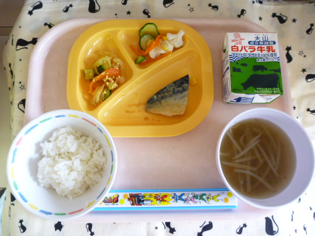 カレー味で食欲アップ!(2022/06/01) ★ ごはん ◆ サバの味噌煮 ◆● 野菜のカレー炒め ★● カラフルサラダ ◆● とろろすまし汁 ※あたたかいごはんとスープは、おかわり自由です。 ※牛乳は年長希望者のみです。 ★熱や力になるもの◆血や肉になるもの●体の調子を整えるもの ツイート