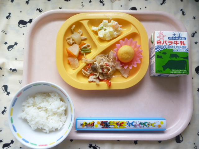 暑い日はさっぱりした味付けで!(2022/06/14) ★ ごはん ◆● 豚肉のさっぱり炒め ◆● 大根旨煮 ★● ポテトサラダ ◆ チーズフライ ※あたたかいご飯はおかわり自由です。 ※牛乳は年長希望者のみです。 ★熱や力になるもの ◆血や肉になるもの ●体の調子を整えるもの ツイート