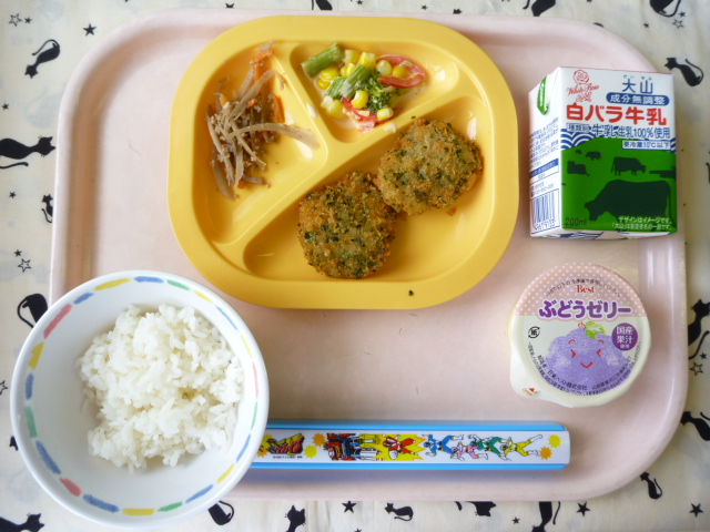 シャキっとごぼう☆よくかんで☆(2022/06/20) ★ ごはん ◆ 白身魚の磯辺フライ ◆● きんぴらごぼう ● ブロッコリーサラダ ★ ぶどうゼリー ※あたたかいご飯はおかわり自由です。 ※牛乳は年長希望者のみです。 ★熱や力になるもの ◆血や肉になるもの ●体の調子を整えるもの ツイート