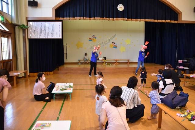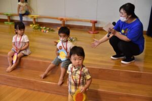 お誕生会ではみんなで歌をうたったり、拍手をしたりして、7月8月生まれのお友だちをお祝いしました♪