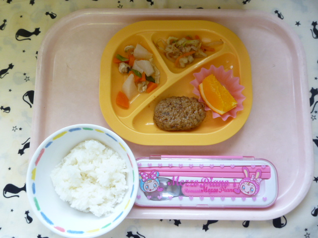 テリっと輝く☆照焼きハンバーグ(2022/07/11) ★ ごはん ◆ 照焼きハンバーグ ◆● 大根旨煮 ◆● おかか和え ● オレンジ ※あたたかいご飯はおかわり自由です。 ★熱や力になるもの ◆血や肉になるもの ●体の調子を整えるもの ツイート