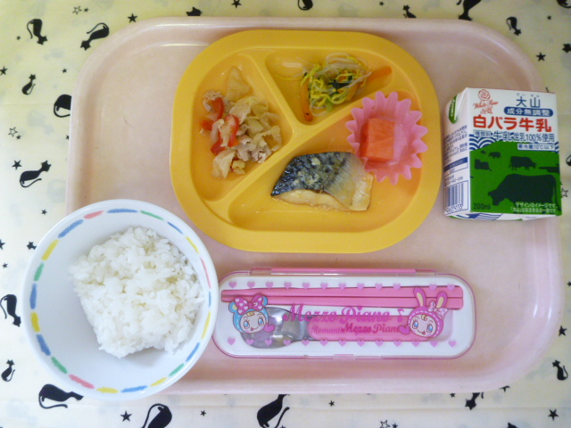 夏といえばスイカだね♪(2022/07/15) ★ ごはん ◆ サバの味噌煮 ◆● 生姜炒め ◆● 千草和え ● スイカ ※あたたかいご飯はおかわり自由です。 ※牛乳は年長希望者のみです。 ★熱や力になるもの ◆血や肉になるもの ●体の調子を整えるもの ツイート