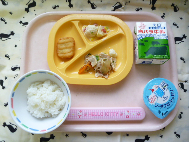豆腐は栄養満点の食べ物です☆(2022/07/19) ★ ごはん ◆● 豚肉のさっぱり炒め ◆ 豆腐ナゲット ★● 花野菜サラダ ★ ソーダフロート風ゼリー ※あたたかいご飯はおかわり自由です。 ※牛乳は年長希望者のみです。 ★熱や力になるもの ◆血や肉になるもの ●体の調子を整えるもの ツイート