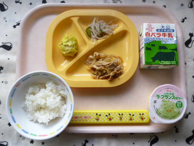 黄色い皮のかぼちゃシューマイ(2022/10/24) ★ ごはん ◆● 豚肉スタミナ炒め ★◆●かぼちゃシューマイ ● ゆかり和え ★ ラ・フランスゼリー ※あたたかいご飯はおかわり自由です。 ※牛乳は年長希望者のみです。 ★熱や力になるもの ◆血や肉になるもの ●体の調子を整えるもの ツイート