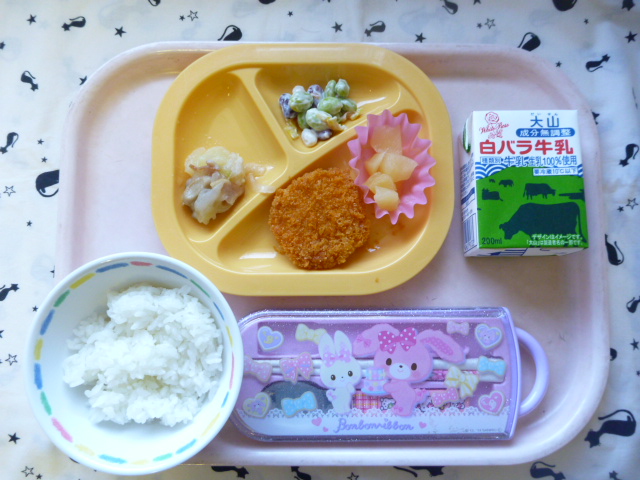 カラフル豆のコロコロサラダ☆(2022/11/02) ★ ごはん ◆ エビカツ ★◆●ジャーマンポテト ● ビーンズサラダ ● りんご缶 ※あたたかいご飯はおかわり自由です。 ※牛乳は年長希望者のみです。 ★熱や力になるもの ◆血や肉になるもの ●体の調子を整えるもの ツイート