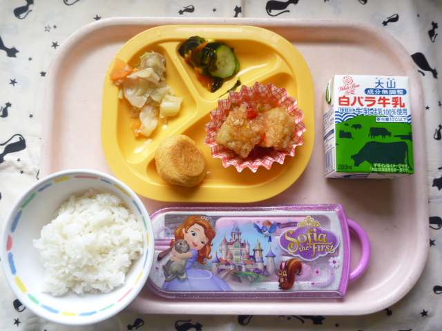 ミネラルたっぷり☆海藻サラダ☆(2022/11/22) ★ ごはん ◆● タラの甘酢だれ ◆● キャベツツナ炒め ◆● 海藻サラダ ★ シュークリーム ※あたたかいご飯はおかわり自由です。 ※牛乳は年長希望者のみです。 ★熱や力になるもの ◆血や肉になるもの ●体の調子を整えるもの ツイート