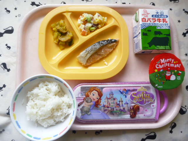 今日はクリスマスゼリー☆お楽しみに(2022/12/12) ★ ごはん ◆ 鮭のムニエル ◆● ポトフ ★● さつま芋サラダ ★ クリスマスゼリー ※あたたかいご飯はおかわり自由です。 ※牛乳は年長希望者のみです。 ★熱や力になるもの ◆血や肉になるもの ●体の調子を整えるもの ツイート