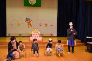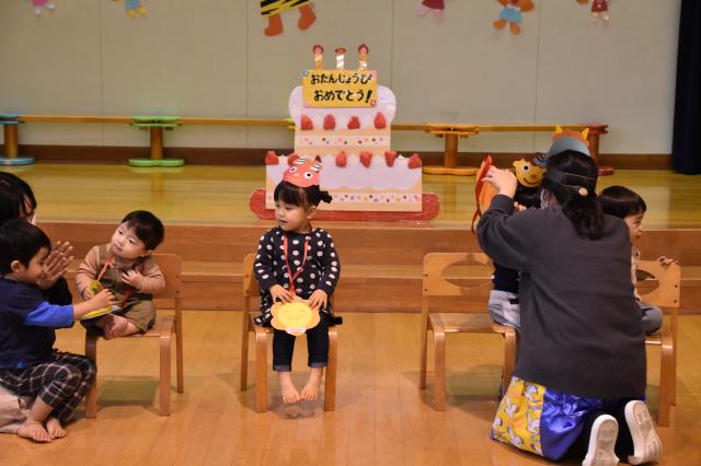 4人のお友達を「たんたんたんたん たんじょうび~♪」と歌をうたって、みんなでお祝いしました。