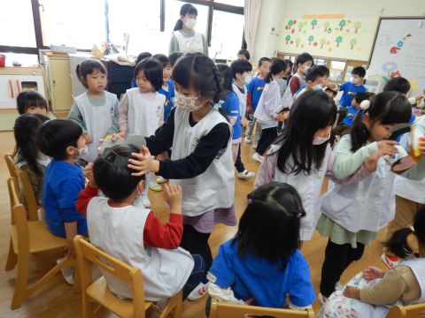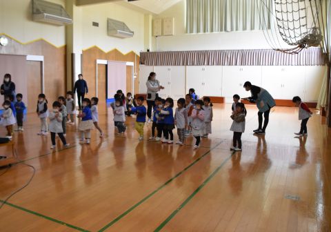 新入園児歓迎会(2023/04/17) みんなで、新入園児の歓迎会をしました。 年長組のお兄さんお姉さんが、小さい組のお友だちに手作りのプレゼントを渡しました。 また、遊戯室で先生と一緒にダンスをしたりして楽しみました。 とっても楽しい新入園児歓迎会でした。 ツイート