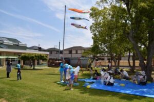 爽やかな天気の下で、幼稚園のこいのぼりも青空を元気に泳いでいました!