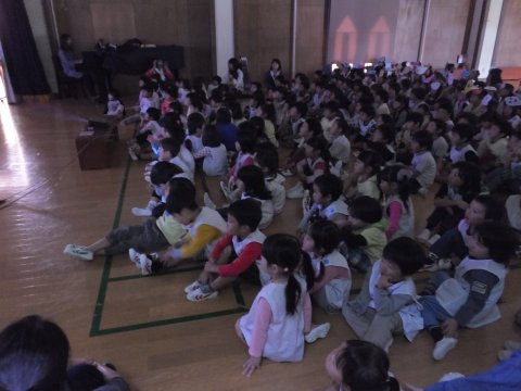 今月の誕生会は、年長組さんと一緒に歌をうたって遊んだり、スライドを観たりして楽しみましたよ!